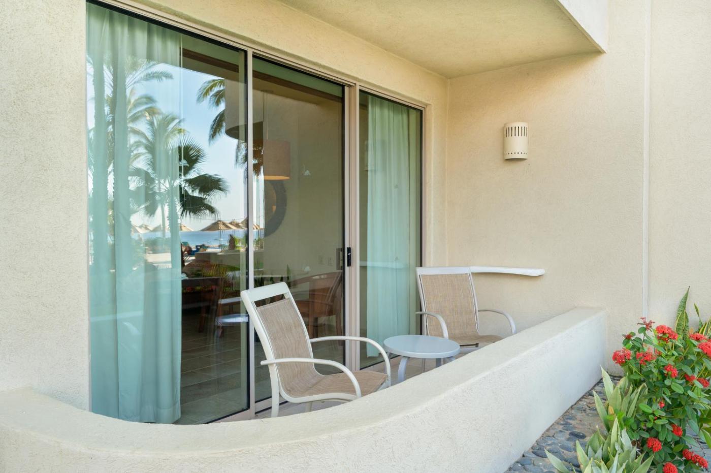 Deluxe Ocean View Room. Situated in the Sol building, this very spacious premium room offers a private balcony with stunning views of the Sea of Cortez. It is finished in elegant hardwoods and marble, and includes a laptop safe and a flat-screen TV. A minibar and coffee maker are also provided. The stylish bathroom includes a hairdryer and a glass-walled shower. ;